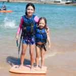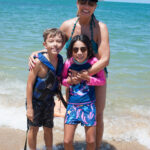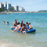 As crianças brincaram muito, na areia, no mar, numa boia e na prancha. Alguma hora o Vini queria ir pra casa e depois desistiu e não queria ir embora.