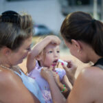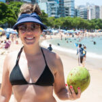 Como é final de semana, estava bem cheia, não foi muito fácil achar um lugar ao sol. Ao lado do nosso guarda-sol, conhecemos um casal capixaba e ficamos a tarde toda batendo papo. Algum momento a Isis queria fazer o número 2 e a mulher fez questão de levar ela e a Grazi no apartamento para usar o banheiro.