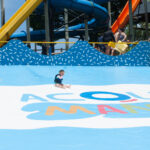 Chegando lá, consegui um estacionamento bem na porta e também meio ingresso para todos. Logo na entrada, tinham duas piscinas, o Vini já gostou da primeira que entrou e não queria sair. Com muita insistencia, aceitou a conhecer o resto do parque.