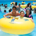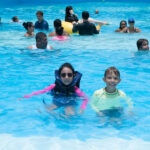 Depois do almoço, o Vini, Isis e Antônia voltaram para a piscina, de tempos em tempos ligavam as ondas, ficava mais divertido. Teve também uma recração dentro da piscina, com dança e música. A Isis ficou dançando o tempo todo.