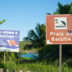 A praia ficava ao sul de onde estamos e se chama Praia de Bacutia, em Nova Guarapari. É bem perto daqui, uns 10km só. A região é cheia de empreendimentos de alto padrão e a praia é numa baía pequena.