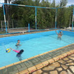 Passamos a tarde na piscina, as vezes davamos uma volta nas outras piscinas. O Vini e a Antônia ficaram numa que era uma quadra de volei aquático.