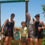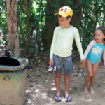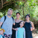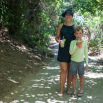 A Isis acabou caindo e raspando o mesmo joelho que já estava machucado. Teve que vir no colo da Grazi o caminho todo. Encontramos uns macaquinhos na trilha, estavam comendo banana. As crianças quiseram fotos com eles.