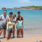 Tomamos muitas caipirinhas e comemos um monte de coisas dos ambulantes. A água também é fria, mas as crianças não se incomodam muito com isso. Fui com a Isis e a Antônia passear nas pedras que tinha no final da praia, dizem que tem tartarugas nesta parte da praia, mas não vimos nenhuma. Na volta deste passeio, acabei arrebentando meu xinelo e a Isis caiu e ralou o joelho.