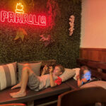 Caminhamos um bom trecho da orla, o Vini estava meio azedo de fome, então paramos num desses restaurantes a beira mar para almoçar. O Restaurante era o Madame Bardot, nós pedimos um ceviche, salada ceaser e dois pratos kids para as crianças.