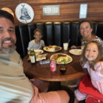Pedimos um hambúrguer, espetinho e alguns chopps para acompanhar. As crianças ficaram só no celular.