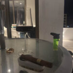 A Mari estava trabalhando em Joinville e o Marccelo tinha um compromisso de noite, com isso aproveitei para tomar um vinho e fumar um charuto na cobertura, o bom é que não tinha vento nenhum.