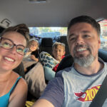 Pegamos vários trechos com bastante chuva, numa estrada com muitas curvas e parte de serra. A Isis até reclamou algumas vezes da distância, mas era mais para chegar logo e brincar com a Antônia. O Vini veio falando com o Arthur o tempo todo.