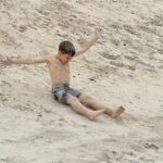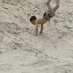 Tomamos café com tempo e na hora do almoço, decidimos ir para a beira da praia, aproveitar o sol para tomar um banho e mar. O Vini, para variar, não queria ir e depois aproveitou bastante.