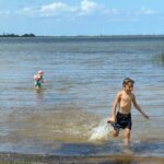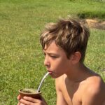 O Vini estava entediado, queria ter ficado no celular. Entrou um pouco na lagoa, andou de quadriciclo, tomou chimarrão, depois me convidou para ir no mercadinho comprar um docinho e um picolé.