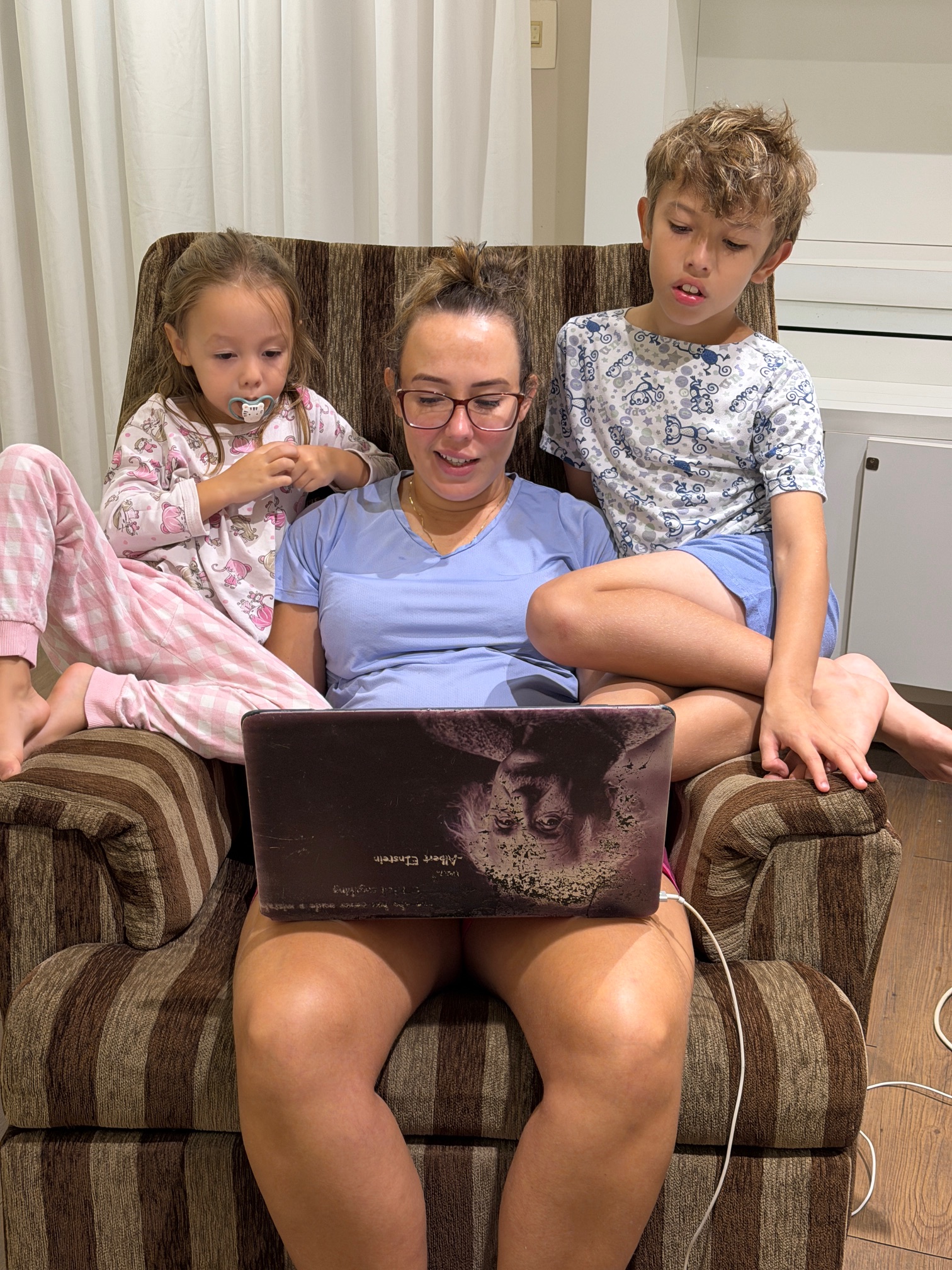 A foto da semana é nossa assistindo minha mãe trabalhar.
