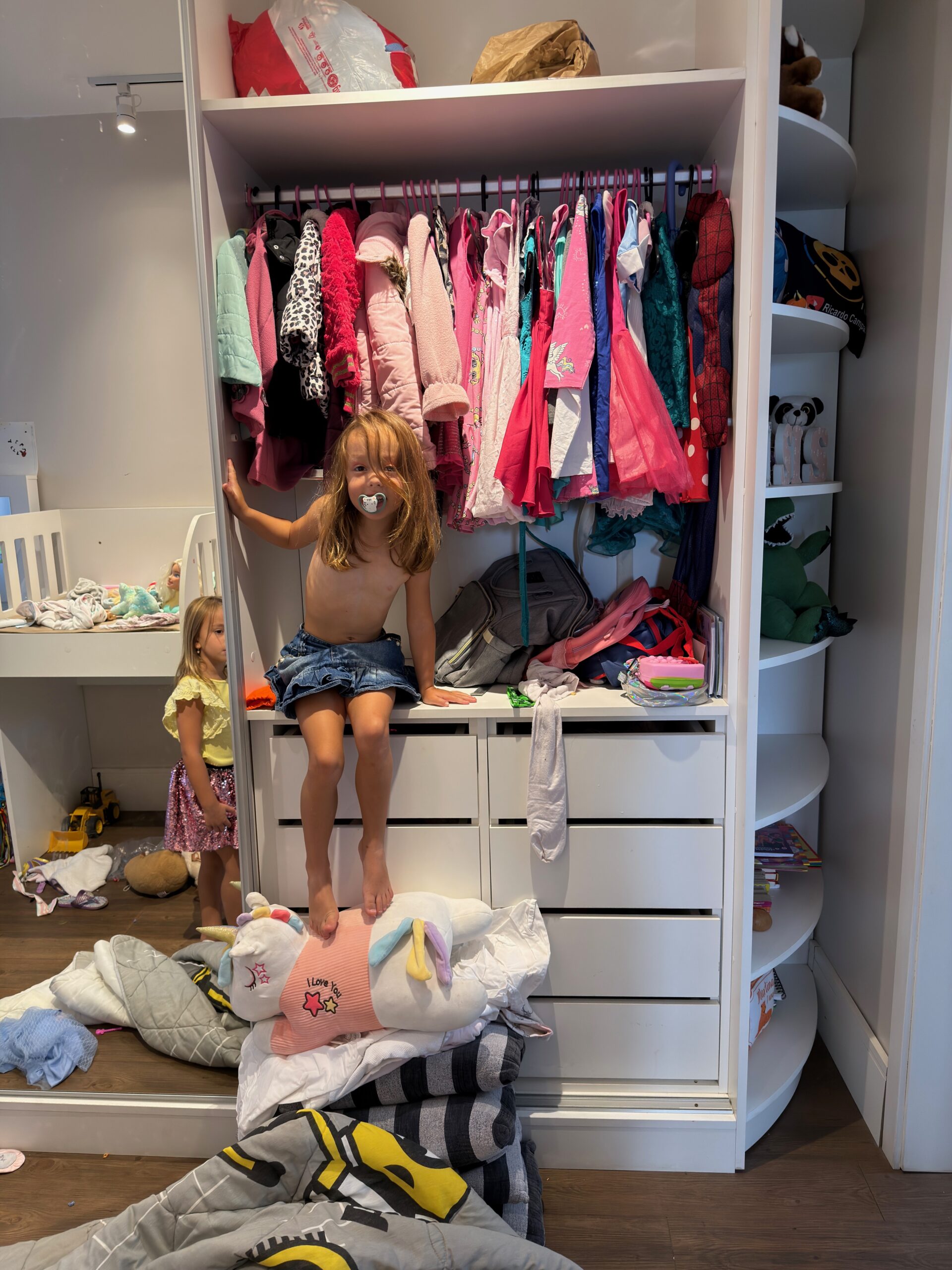Bjs da Isis. A foto da semana sou eu e a Luiza bagunçando o meu quarto.